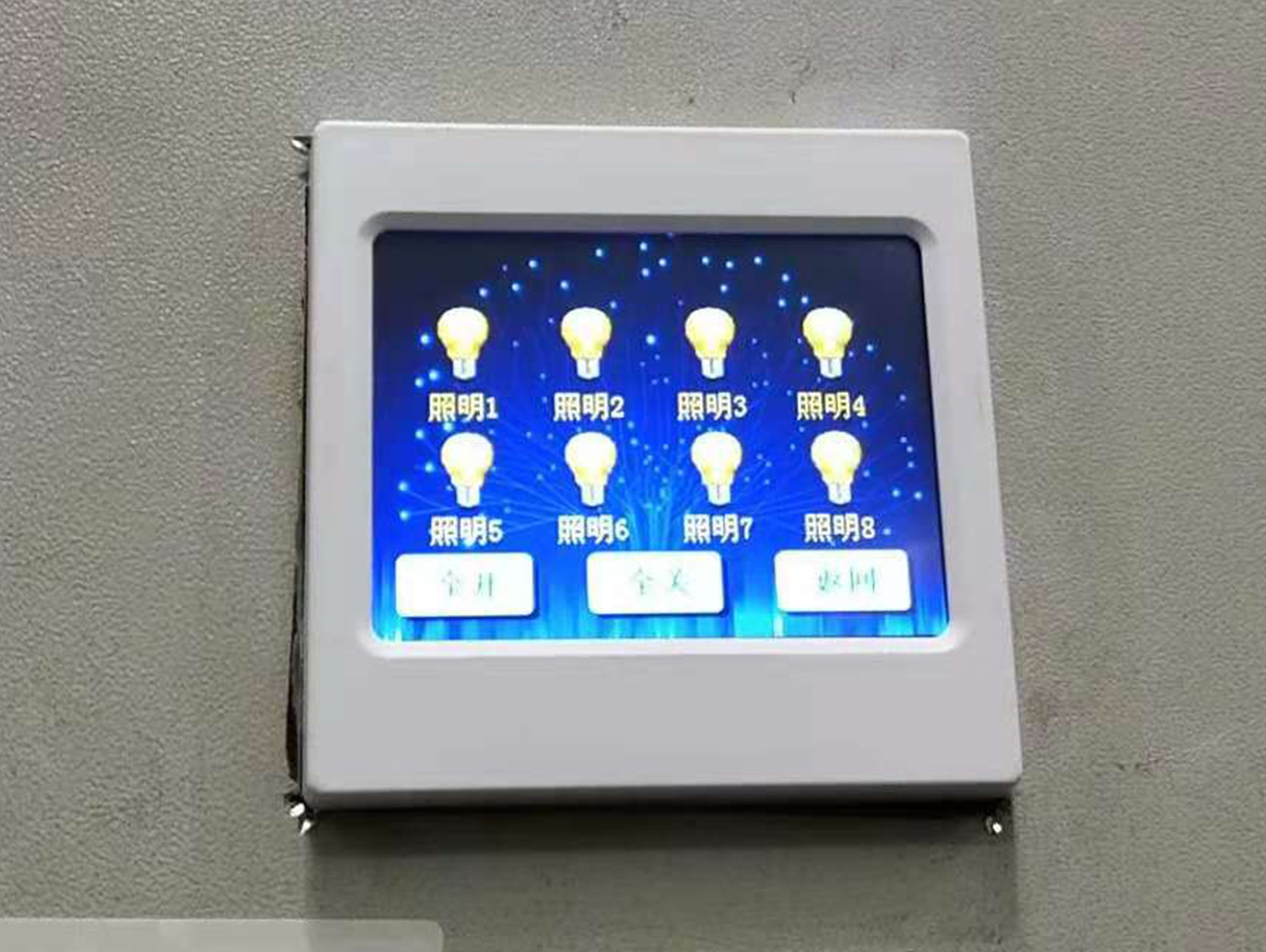 該項目采用的是經(jīng)濟型的照明控制模塊,如下圖,4回路的,8回路的都有。且由于經(jīng)濟型模塊不具備遠程控制功能,所以該項目則是每個電箱配了一個3.5寸觸摸屏。