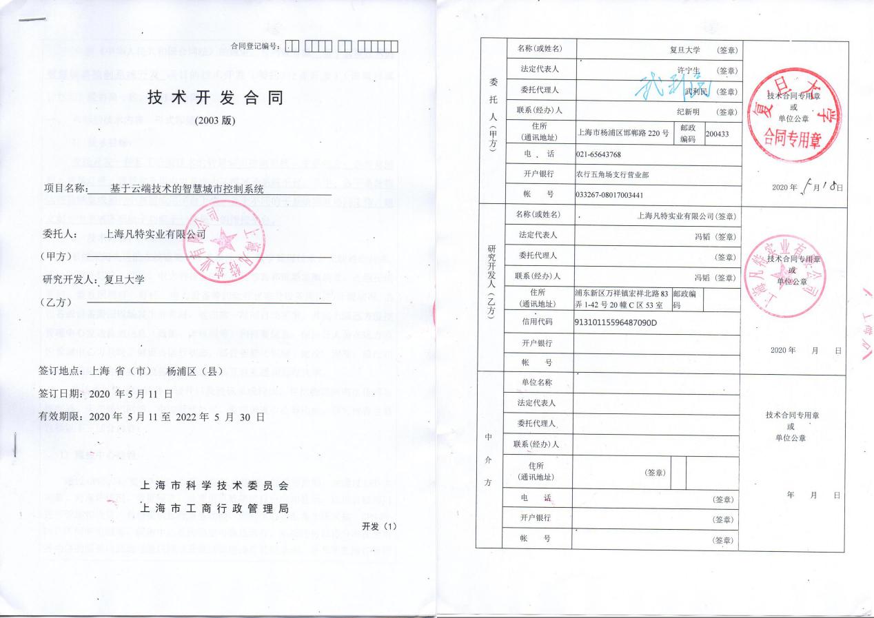 同年 5月11日,上海凡特實(shí)業(yè)有限公司正式與復(fù)旦大學(xué)簽訂《技術(shù)開發(fā)合同》——基于云端技術(shù)的智慧城市控制系統(tǒng)。項(xiàng)目將圍繞智慧城市開展科學(xué)研究、技術(shù)開發(fā)、成果轉(zhuǎn)化及文化交流等方面的合作。這次合作一面是能夠落實(shí)國(guó)家科教興國(guó)戰(zhàn)略,促進(jìn)科技創(chuàng)新,加快企業(yè)經(jīng)濟(jì)發(fā)展,充分利用高等院校的技術(shù)、人力等資源以及先進(jìn)成熟的技術(shù)成果。另一面,利用企業(yè)的生產(chǎn)條件,提高教學(xué)的科研能力,將科研成果盡快地轉(zhuǎn)化為生產(chǎn)力,不斷提升企業(yè)的技術(shù)和管理水平,雙方發(fā)展各自優(yōu)勢(shì)。上海凡特通過多種形式開展全面合作,共同推進(jìn)公司與復(fù)旦學(xué)校的全面技術(shù)合作,形成專業(yè)、產(chǎn)業(yè)相互促進(jìn)、共同發(fā)展,努力實(shí)現(xiàn)“校企合作、產(chǎn)學(xué)雙贏”!