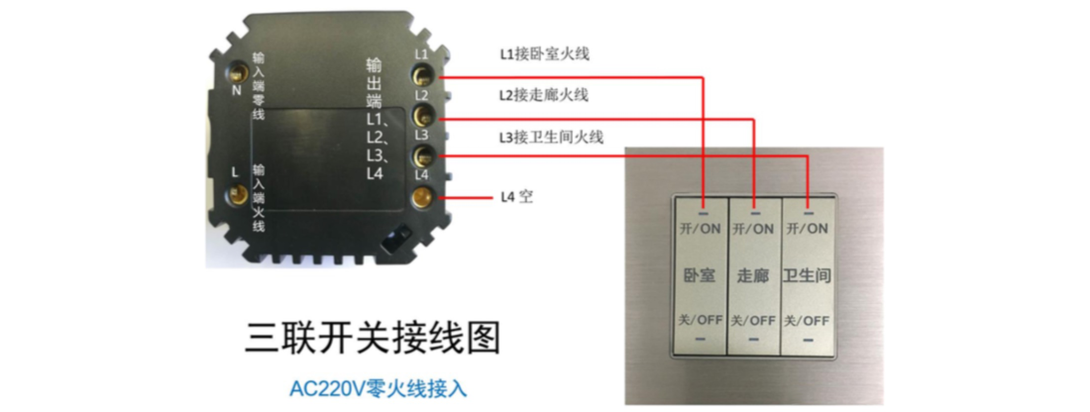 9.接零火線,可簡(jiǎn)單替代原有的墻壁開關(guān);