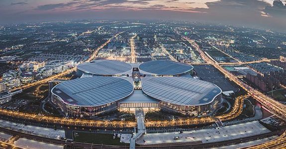 項(xiàng)目概述: 國家會展中心形狀如四葉草,4個展館猶如四個葉片匯聚于中央廣場,13個展廳單個面積近3萬平方米,相當(dāng)于4個標(biāo)準(zhǔn)足球場。其中3個單層“無柱展廳”凈高達(dá)34米,穹頂跨度達(dá)108米,堪稱會展“巨無霸”。而位于中央的商業(yè)廣場則相當(dāng)于“四葉草之蕊”,匯集美食、電影院、劇場、公共服務(wù)等多種功能。綻放的“四葉草”已經(jīng)成為了上海的新地標(biāo)。