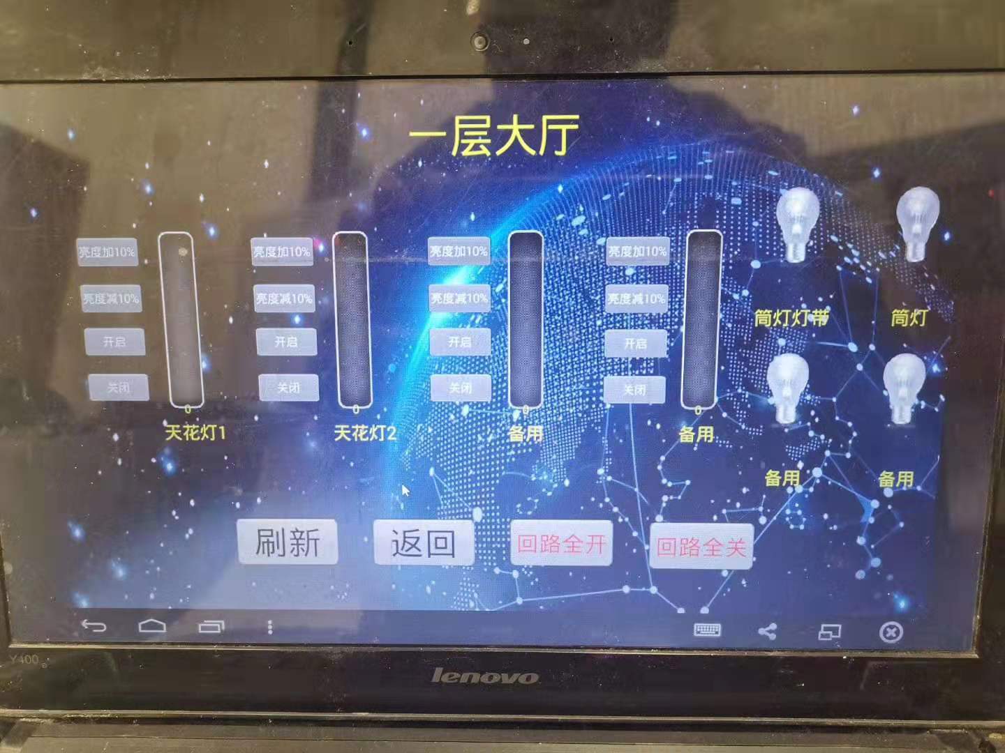 如下圖所示,控制場景亮度+10%,亮度-10%,一鍵開啟關(guān)閉,回路單控。