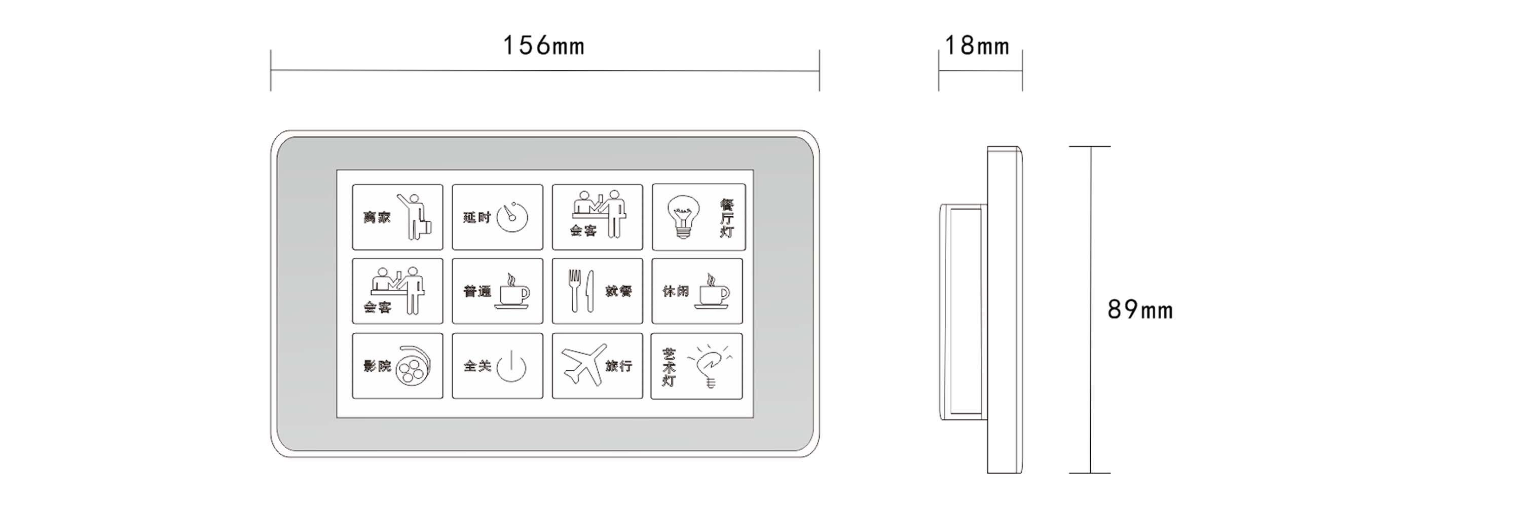 標準146盒安裝,5寸真彩屏,單控開關(guān)、窗簾和場景總線控制,可自定義界面支持3D文字、3D圖片,個性化界面;用于集中控制,支持雙向通信,安裝方便,接口靈活,適用于各種多媒體中央控制系統(tǒng)。
